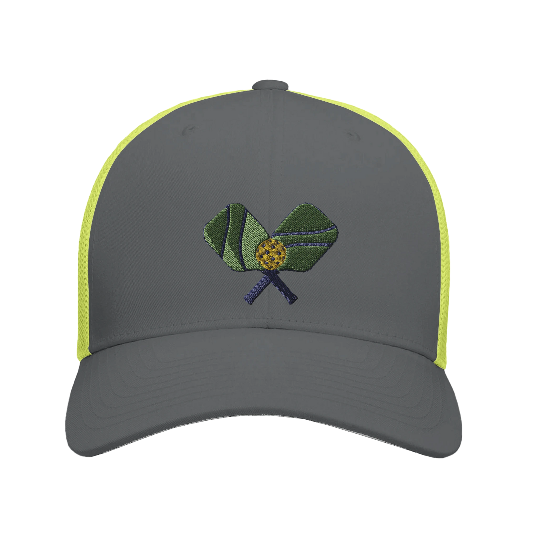Clean Iconic Graphic: A minimalist, high-contrast design featuring green paddles and a yellow ball that instantly identifies you as a player.